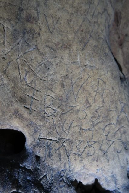 The markings are particularly difficult to decipher, according to The Guardian. They include a large number of crosses and a repeated motif of overlapping “V’s”, thought to be shorthand for “virgin of virgins”, signifying the Virgin Mary. The initials PM are also found in multiple places on the walls of the cave, thought to stand for Pace Maria.