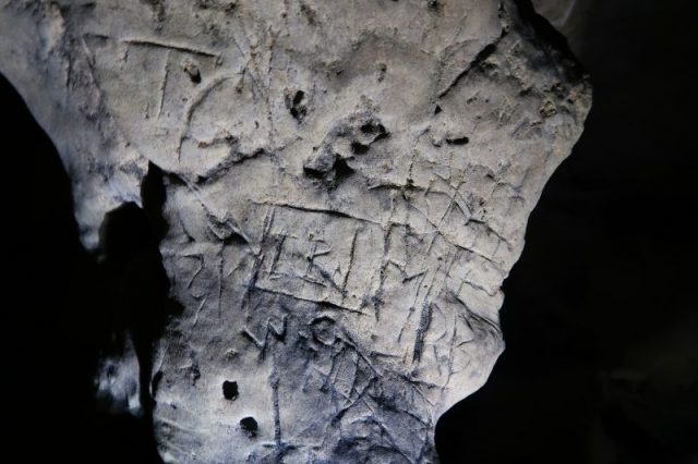 The pair were visiting the cave as part of a tour organized for the Subterranea Britannica group, and immediately spotted the significance of the marks. They observed hundreds of letters, symbols and patterns inscribed on the cave walls.
