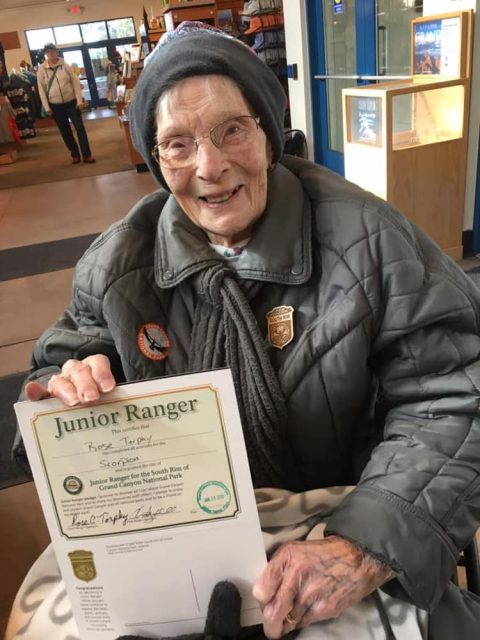 At 103, Rose Torphy can welcome the Grand Canyon into the centennial club. This Junior Ranger has worn her official commemorative pin every day since she gave her pledge, proudly boasting her position of conservationist. One can only hope the Canyon’s 100th birthday inspires at least 100 more people to get involved in conservation efforts.
