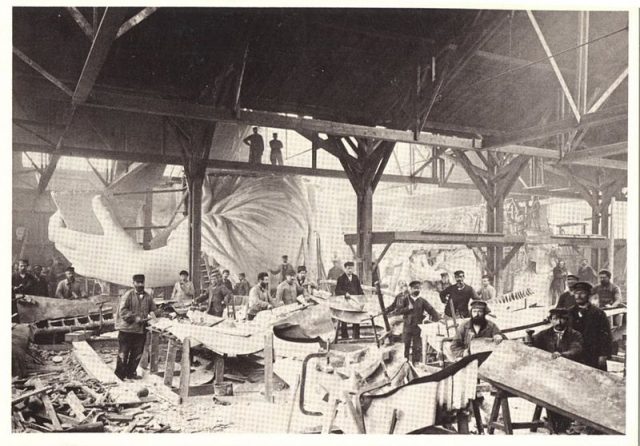 Since scaffolding was out of the question due to the width of the pedestal, Bartholdi asked Eiffel for help, who came to his aid by constructing a massive iron framework from which the statue was assembled.