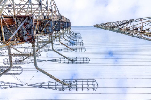 The over-the-horizon Duga Radar stands 492 feet high and stretches almost 2,300 feet in length. It was built in 1972 to be a signal receiver. The transmitting center was built a short distance away in a town called Lubech-1, now also abandoned.