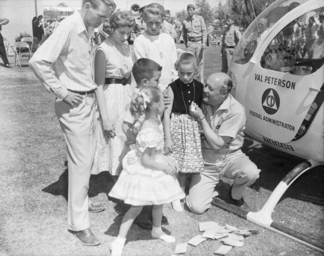 Cities such as San Francisco, New York, Philadelphia, Las Vegas, and Seattle all employed them. The practice began in New York City, in 1952. They were distributed to two and a half million students, who were told to wear them every day, the same as they would if they were soldiers fighting against the Soviet Union.