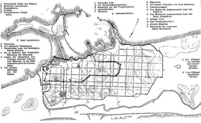 Environmental forces caused havoc in the region for centuries after Alexander’s death. In 356 AD, a tsunami washed over Alexandria, and there have been numerous earthquakes and steadily rising sea levels since then. It’s estimated the ancient remains of the city may have sunk as much as 12 feet since Alexander’s time. The city continued to rebuild on top of the old foundations, which were abandoned and forgotten.