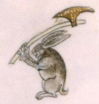 A rabbit with an axe, from The Gorleston Psalter, a mediaeval manuscript from 1310-1324. British Library manuscript 49622.