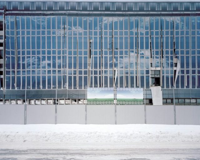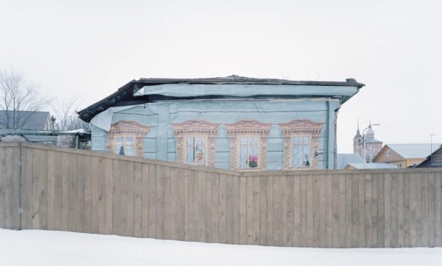 Among Sailer’s photographs, one can find real contemporary versions of Potemkin villages in the Russian town of Suzdal, where local officials decided to tidy up a bit by putting draped banners over dilapidated buildings, to welcome President Vladimir Putin.