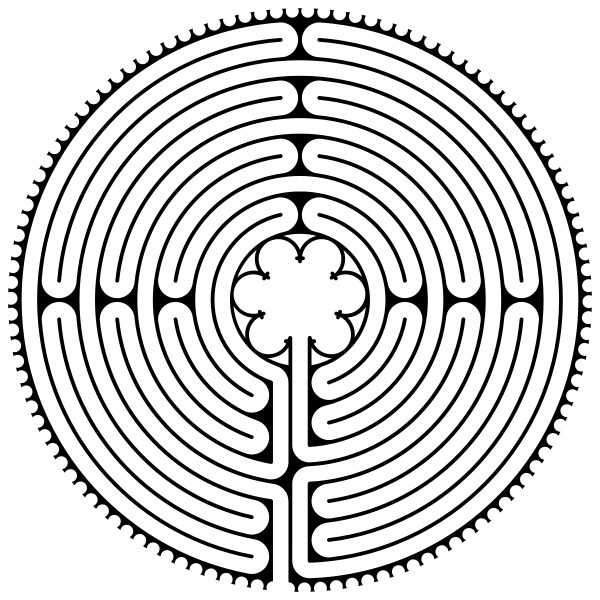 The symbolism of the 11 concentric circles and the central six-lobed rosette — an ancient religious motif — is subtle but significant. The labyrinth depicts the pilgrim’s quest and journey to the Holy Land. Such labyrinths began to appear in Europe during the 12th century, and it was this one in Chartres that served as the standard which other recreations followed.