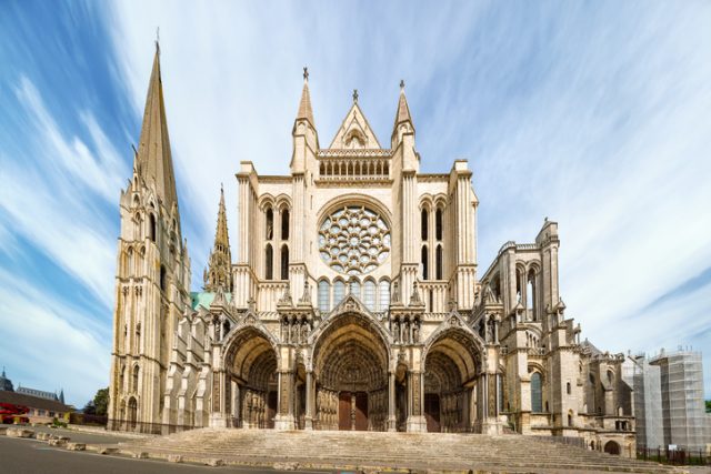 A true embodiment of French Gothic expression in architecture, Chartres Cathedral sits some 50 miles southwest of Paris, in the commune of Chartres. The cathedral was built to be higher and bigger than other cathedrals of the era.
