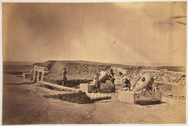 Mortar batteries in front of Picquet House, Light Division, 1855. Island of Guernsey. Image taken by Roger Fenton (English, 1819 – 1869).