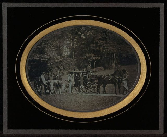 Carriage and team of two horses at Beaulieu, country house of Jean-Gabriel Eynard. Daguerreotype, circa 1850.