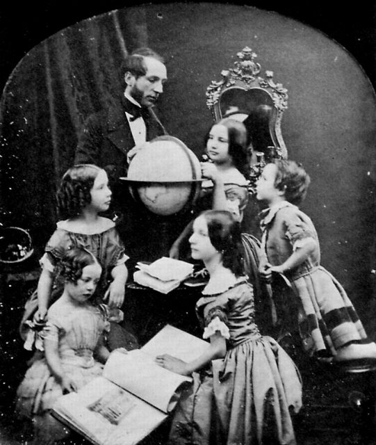 The Geography Lesson, 1851. Image from stereoscopic daguerreotype by Jean Francois Antoine Claudet.