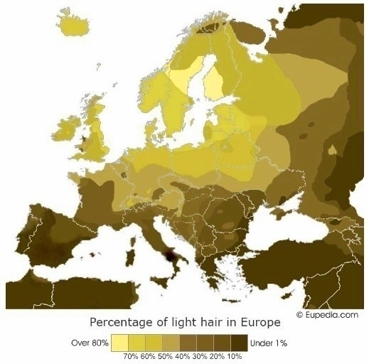Men were attracted to women with golden locks and blue eyes, thus populating the area with blonde and blue-eyed children and grandchildren. Up until then, all humans had had brown hair and brown eyes.
