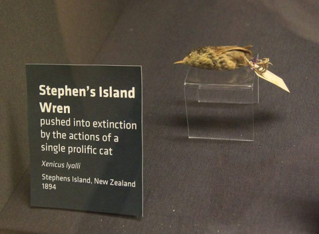 Less than a year after the Lyall wren’s initial discovery, it was pretty well extinct. In February of 1895, the lighthouse keeper wrote a letter to Walter Buller saying that the cats had been decimating the population of the small birds. By the time the letter was written there had only been two sightings of live birds; all the others were brought to him by his cat.