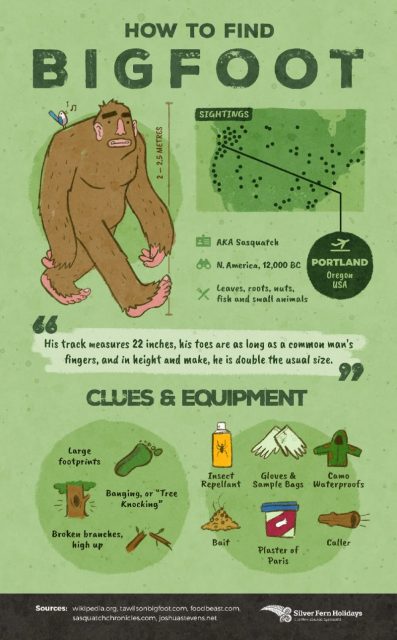 If this sounds like a refreshing way to take a break, then Silver Fern Holidays are here to help. They’ve compiled a handy guide to tracking down terrors on terra firma. Monster hunting isn’t for the faint-hearted but it sure beats trying to find a deck chair or a reasonably priced meal.