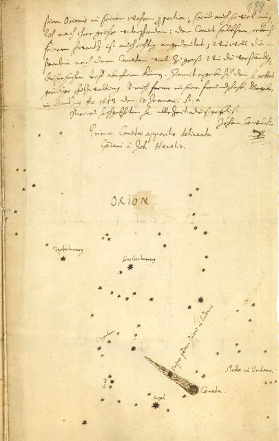 Hevelius’s wife, Elisabeth Koopman, was a partner in his work and became an astronomer of some renown on her own merits. She published his star catalog in 1690, three years after Hevelius’s death; the catalog has been kept at Brigham Young University since 1971.