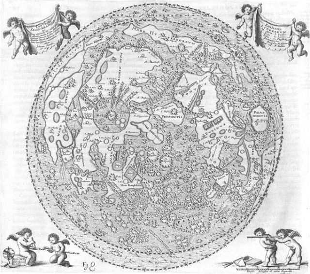 According to Forbes, Pope Innocent X highly respected the book’s information, but he wished it hadn’t been written by a heretic (Hevelius was Lutheran). Hevelius named many of the landscape features, including a mountainous region called the Alps, and several of the names are still in use today, including a crater he named for himself.