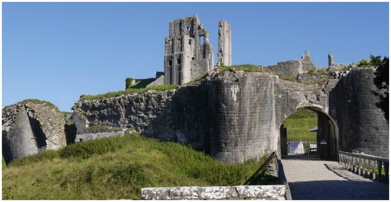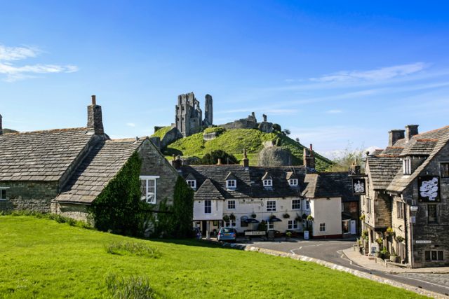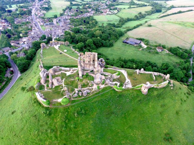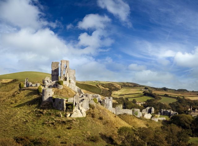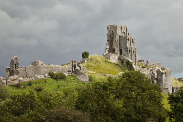 Corfe Castle is a stone stronghold that sits upon a hill on the Isle of Purbeck, a peninsular on the south coast of England. Built in the 11th century by William the Conqueror, it remained in control of the Crown until the 16th century when Queen Elizabeth I sold it to the Lord Chancellor.