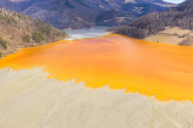 The Rosia Poieni copper reserve is the largest of its type in the country. The mining operation there is no longer being used, but at its peak, the mine produced more than 11,000 tons of copper ore per year. An unfortunate side effect of the mining process is that it generated a lot of sludgy waste, which is where Geamana came in the picture.