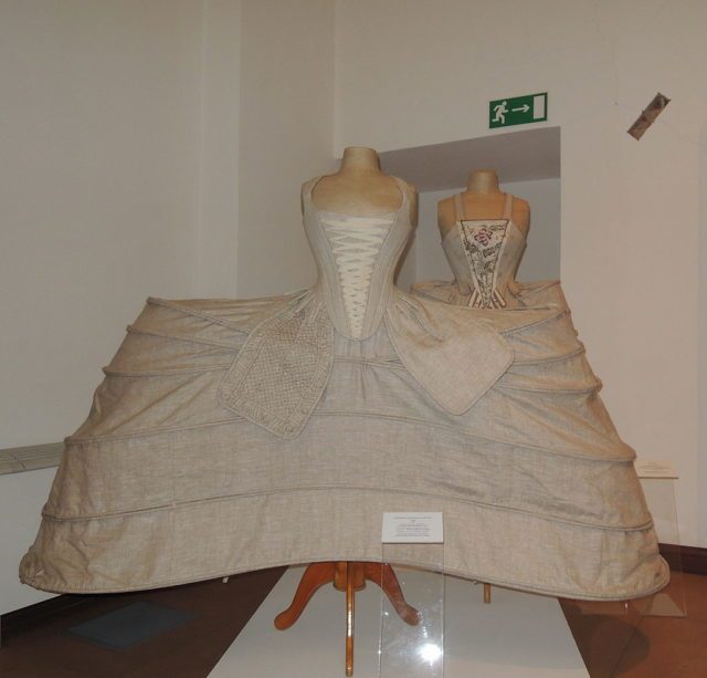 Women could also be seen in panniers, which were specialized under-skirts that made dresses billow out like large balloons below the waist. Highly impractical in use, these designs were actually seen as symbols of power and importance in society, so were highly desirable.