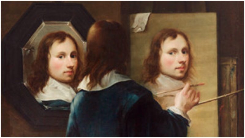 Gumpp’s curious style doesn’t end there, though. The face of the artist in the painting is not visible as his back is turned. Next to his body, Gumpp didn’t just paint the mirror he had looked into for the sake of creating his self-portrait, but he painted the self-portrait itself! His face is duplicated in both the painting’s mirror and the painting’s canvas. In total, there are three Gumpps.