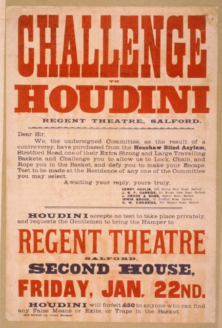 At first, Houdini’s career was slow to take off, but by 1900 he was touring Europe performing his popular escape act. He would challenge local police and officials to lock him up and put him in restraints, but no one could contain him for long. He became known as the “handcuff king”, due to his ability to free himself of his shackles in record time.