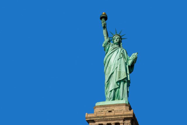 The Statue of Liberty, with the face of the sculptor’s mother, has looked out over New York Harbor since 1886 when she was presented as a gift from the people of France.