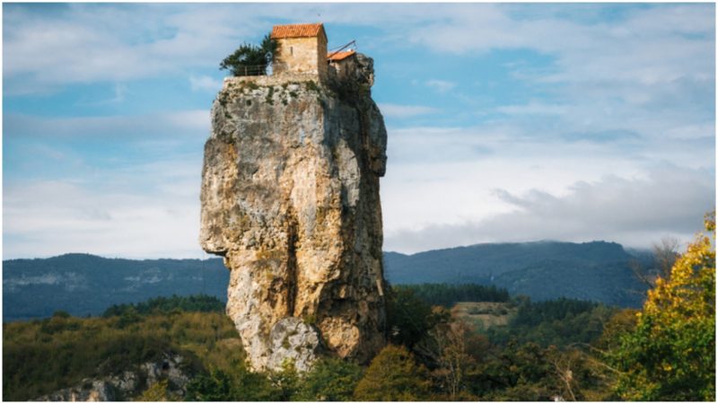 In the western-Georgian region of Imereti lays Katskhi, a tiny village which happens to be home to the Katshki Pillar — a huge natural limestone column that rises 130 feet into the air.