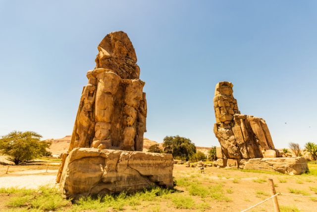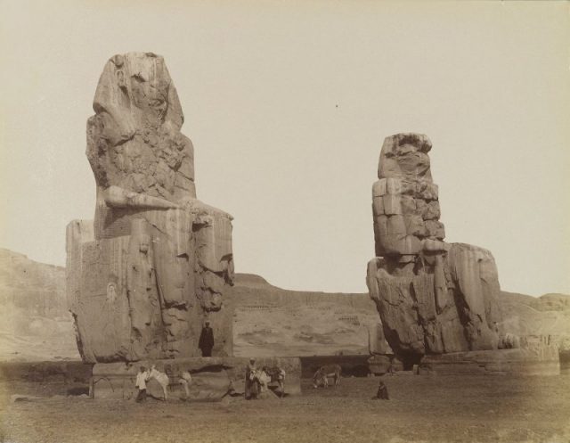 One of those natural disasters purportedly helped the two monuments enter into legend. In the 1st century, the Greek philosopher, geographer, and historian Strabo wrote that when an earthquake struck the region in 27 BC, the upper part of the Northern colossus broke and fell.