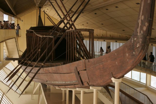 Others speculate that the vessel holds the secret of the Pyramids’ construction. Following this argument, the asymmetrical ship was designed to be used as a floating crane capable of lifting large stone blocks. Wear and tear on the wood indicates that the boat was not just a religious symbol. Khufu Ship was designed similarly to the Sun god Ra’s so-called solar barge, known as Atet. Solar boats in ancient Egypt were mostly made of cedar wood and used in religious rituals.