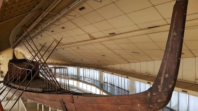 Khufu Ship is currently kept in the Solar Boat Museum near the Great Pyramids of Giza.