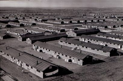 The actual camp a family was assigned to was called a “relocation center.” In modern times, some critics have urged that all euphemisms be halted and the places be called by their correct name: “concentration camps.” Each was its own town, with schools and post offices as well as farmland for growing food and keeping livestock, but always surrounded by barbed wire and guard towers.