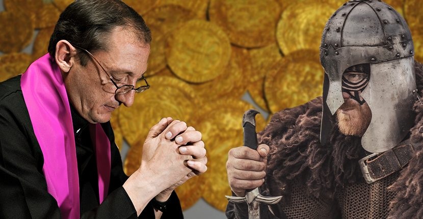 In 2014, a hoard of Viking treasure was discovered in a churchyard in Galloway, Scotland. It had lain in the ground for over one thousand years until unearthed by Derek McLennan, from Ayrshire, with his metal detector. At the time McLennan promised to share the proceeds from the sale of the items, about two million pounds, with the church but has since reportedly gone back on his word.