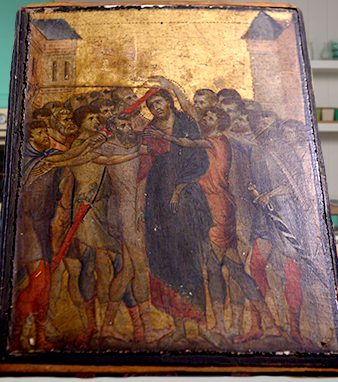An elderly woman in Compiegne, France, had exactly that kind of terrific good fortune recently when she was reorganizing her kitchen. During the work she found what she thought was perhaps an old religious artifact of some kind, and fortunately she took it to experts for their appraisal. The artwork in her kitchen, the experts discovered, was a small Medieval painting by a 13th century Italian painter, who went by the name Cenni di Pepo, but also Cimabue.