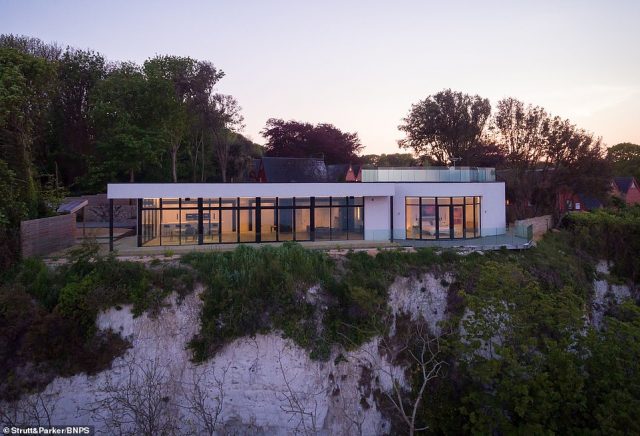 The home is a truly remarkable property with a James Bond feel, according to Edward Church, a representative of the estate agents handling the listing. Parking is at the bottom of the cliff, and to enter the house you walk through an underground tunnel which takes you to an elevator which carries you to the house itself. The elevator is glass, allowing you to see the chalk-cliff blocks as you make the ascent.