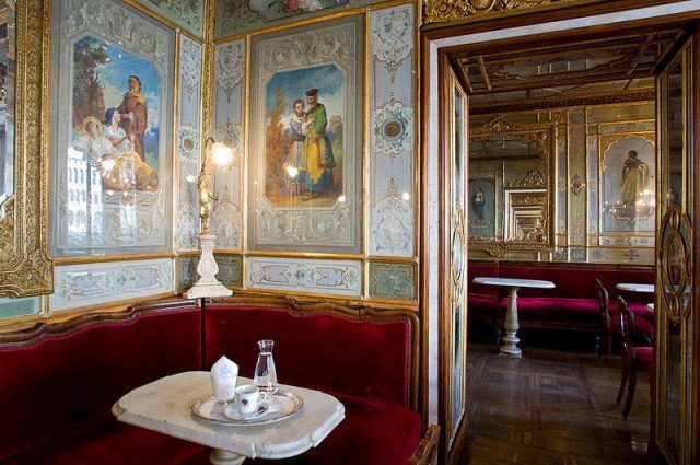 And what a customer list it is: Ernest Hemingway, Lord Byron, Shelly, and Charles Chaplin. Charles Dickens and Casanova also drank coffee there, to say nothing of the current celebrities, politicians, and other well known figures who patronize the cafe.