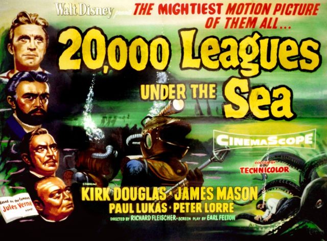 Richard Fleischer was in the director’s chair, going on to work with Douglas two years later for The Vikings. Douglas only had a falcon to battle in that flick. In this one, he had to wrangle a giant squid! The mechanical creation ranks among Tinseltown’s definitive monsters.