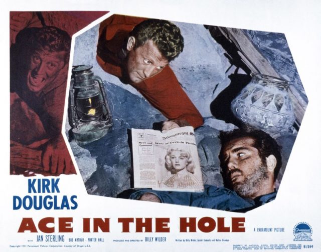 One of the greatest films showcasing Douglas vs the establishment (actually the establishment media) is Billy Wilder’s film noir Ace In The Hole from 1951. In the star’s extensive gallery of memorable and sometimes unsavory characters, reporter Chuck Tatum surely ranks among the most infamous.