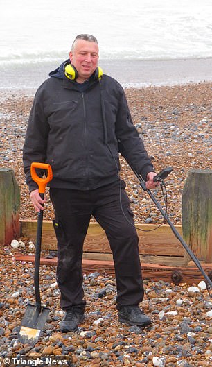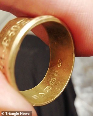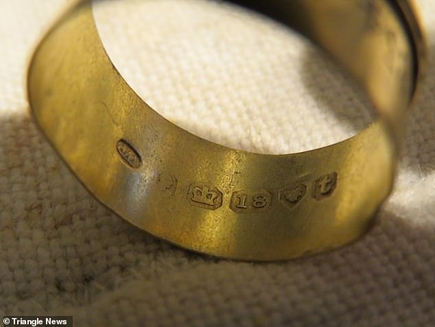 Geoff Smith has been a metal detectorist since 2015. He was out on the beach one night with his Minelab Equinox metal detector, when he found it ‘just poking out of the sand’ with his   He was out at night, so it was dark, and the 18-carat gold ring caught the light from his headlamp. His first thought was that he’d spotted the bottom of light bulb, as the ring had been remade to fit on the top of walking stick or something similar.
