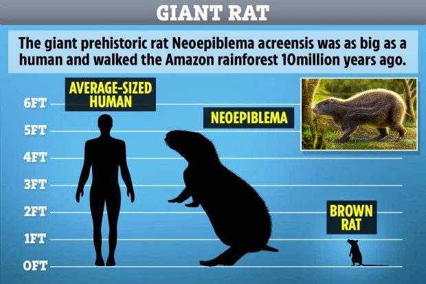 An giant rat the size of a human has been found in South America. Thankfully for the squeamish, it wasn’t alive. Archaeologists working at the Acre dig site in the western Brazilian Amazon uncovered 2 fossil skulls – one almost completely preserved, the other a fragment. The creature, named ‘Neoepiblema acreensis’, existed 10 million years ago and has become the focus of a new brain study.