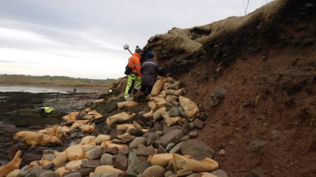 A combination of clay, to cover any bones sticking out, and sandbags has been deployed thus far. Archaeology Orkney released a statement on their website, saying “We know that the sandbags are not the answer to protecting the site in the long term, but they provide some protection, and as soon as the weather makes it safe to replace and secure them again, we’ll put out a shout for help.” Newark is partly composed of soft boulder clay, meaning the island is prone to landslides. Authorities are advising caution at all times.