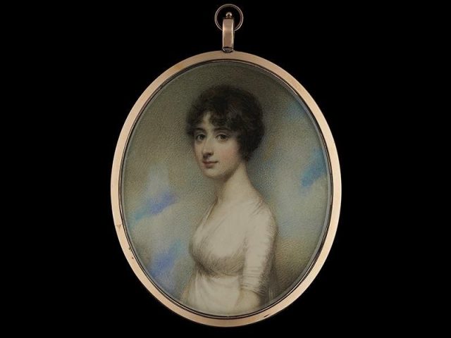 The portrait contains the subject’s actual hair in the back. “Locks of the sitter’s dark brown hair were braided into a design on the object’s reverse—a practice common in Victorian jewelry-making and art-making” notes Smithsonian Magazine, referring to writings by Allison Meier in Artsy. The little gold-framed advert may have “marked her reentry into society following the failed engagement” it continues, reporting on word from Jane Austen’s House. The museum is based in a 17th century cottage occupied by Austen during her final years.