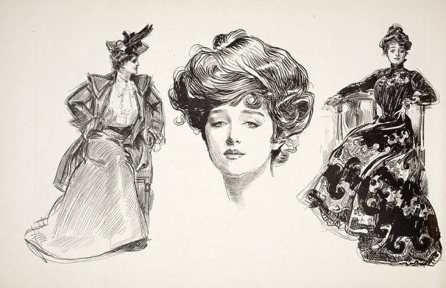 The Gibson girl hairstyle was created by artist Charles Dana Gibson in the 19th century as sort of a precursor to the messy bun. Gibson’s drawings were meant to show an image of the ideal woman with her hair loosely piled on top of the back of her head with long curly tendrils all around.