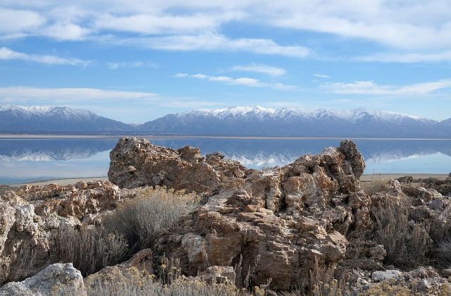 The Great Salt Lake in Utah is the largest lake west of the Mississippi River. As one would guess from its name, the lake is salty. In fact, it’s too saline to support fish or many other aquatic species. It also sits over several wide, flat basins, which means its surface area can expand or contract to a surprising degree with even relatively small changes in the water level. Those changes make developing the shoreline something of a challenge, since the shore isn’t stable. It also means that sometimes things come to the surface that you don’t usually see.