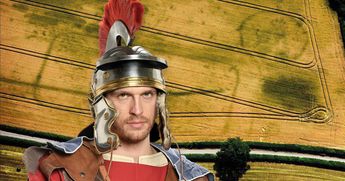 As the grass and vegetation withered in the hot, dry weather of that heat wave, certain fields started showing the clear outlines of lines and shapes that were different colors than the rest of the surrounding landscape. Those outlines were the remains of ancient structures that date from the Roman conquest of the British Isles, and clearly visible in aerial photographs.