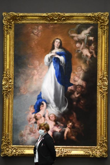 Originally commissioned to hang in a 17th century priests’ residence, Murillo labored on the work between 1660 – 65. “The artwork depicted the Virgin dressed in blue and white, with her hands crossed over her bosom as she looked towards the heavens while she stood on the moon” writes the Daily Mail.