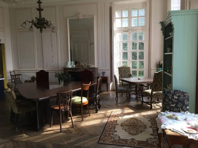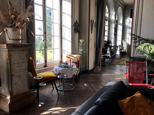 Fate smiled when a friend pitched in financially – in 2019 they bought the chateau, after a couple of years’ worth of yearning. Surrounded by 26 hectares of long-established woodland it has 30 rooms, 16 of which are bedrooms. An Airbnb listing mentions only 6 beds. Chateau de Freschines may be a prestigious location to lay one’s hat, but at this stage it’s still a bit rough around the edges. This looks to be more than made up for by the awe-inspiring decor, faded yet fabulous.
