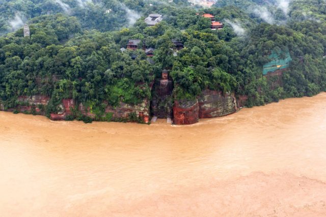 Concerns are two fold. For starters there’s the grave matter of water touching the 233 ft high Buddha in the first place. As The Independent reports, “A local legend says that if the feet of the eighth-century statue carved into a mountainside get wet, Sichuan’s capital city Chengdu will flood too.”