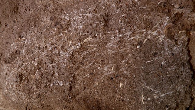 Lyn Wadley, an archaeologist with the University of Witwatersrand, found what she believes is a crude kind of bedding material, discovered while she and her colleagues were excavating the cave for other artifacts. She found tiny, white marks in the earth, and she believes they are a kind of straw grass brought into the cave by people using it to take shelter, and the plant materials were piled in for sleeping.