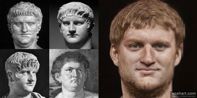 Once the computer worked its magic, Voshart added the finishing touches in Photoshop. He’s produced 54 photorealistic images of Emperors who ruled over Rome between 27 BC and 285 AD. This epic span includes the likes of Nero, Hadrian, Augustus and Maximinus Thrax. Limited edition prints are for sale depicting the whole line up.