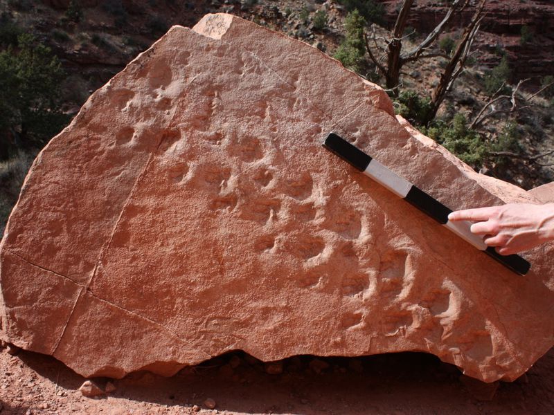 Whether the boulder in question is truly 313 million years old or somewhat younger doesn’t really matter; the fossilized footprints teach us a great deal about a species that once roamed over the canyon, in an era long past.
