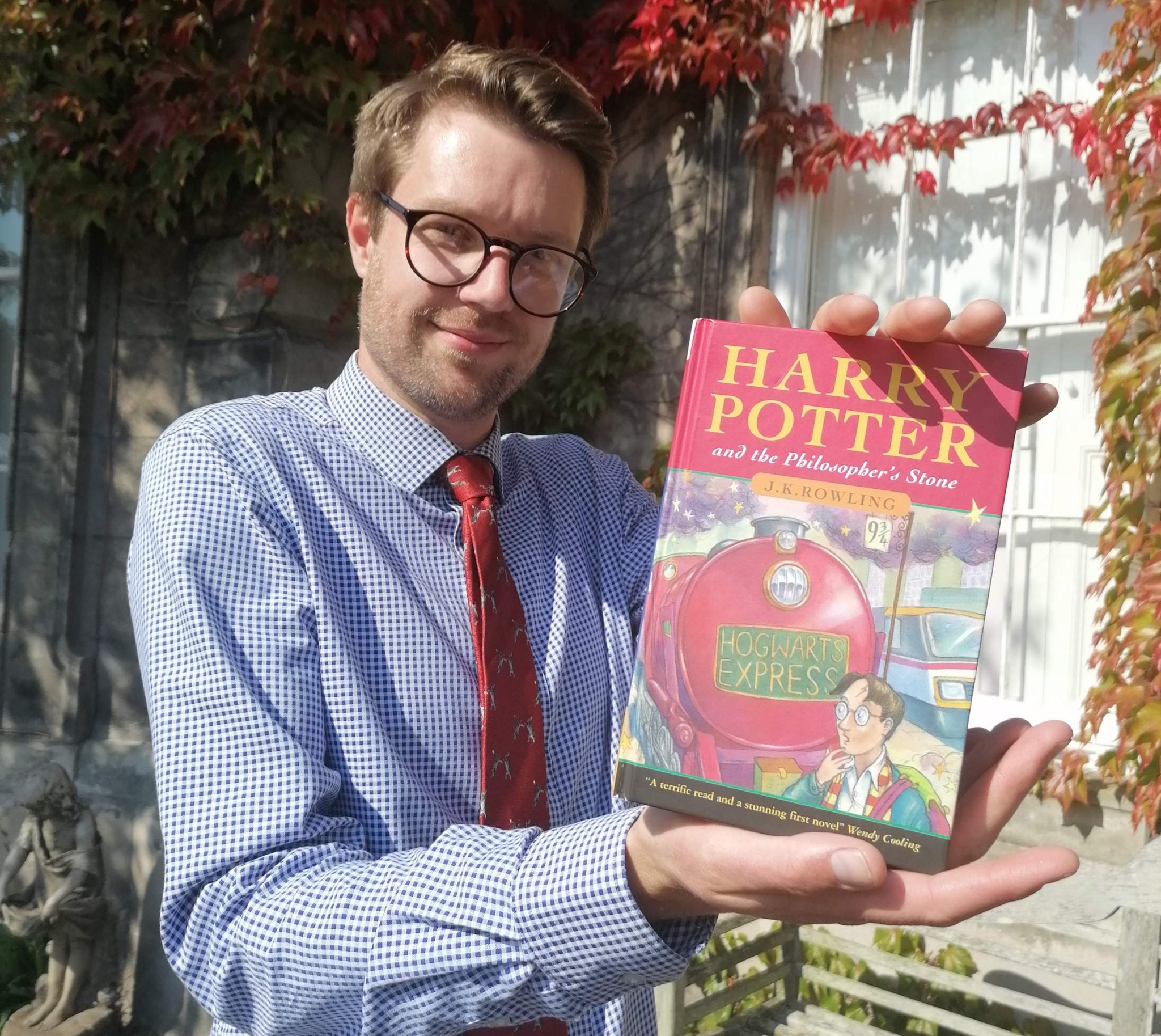 A newly-discovered copy of Harry Potter and the Philosopher’s Stone by J K Rowling, unearthed by